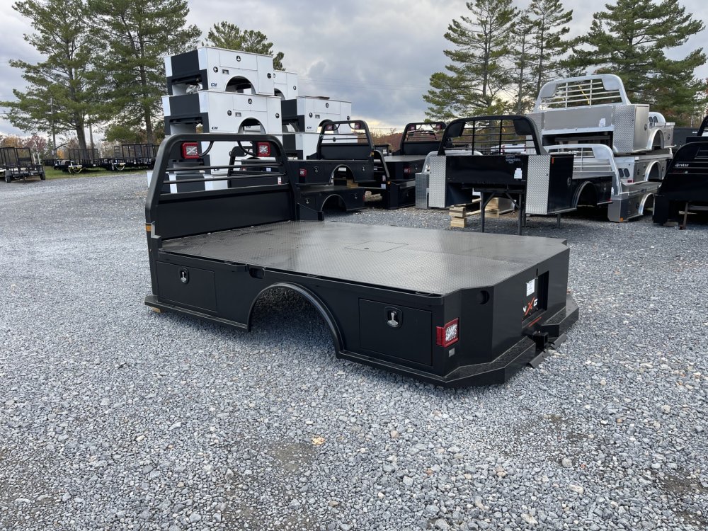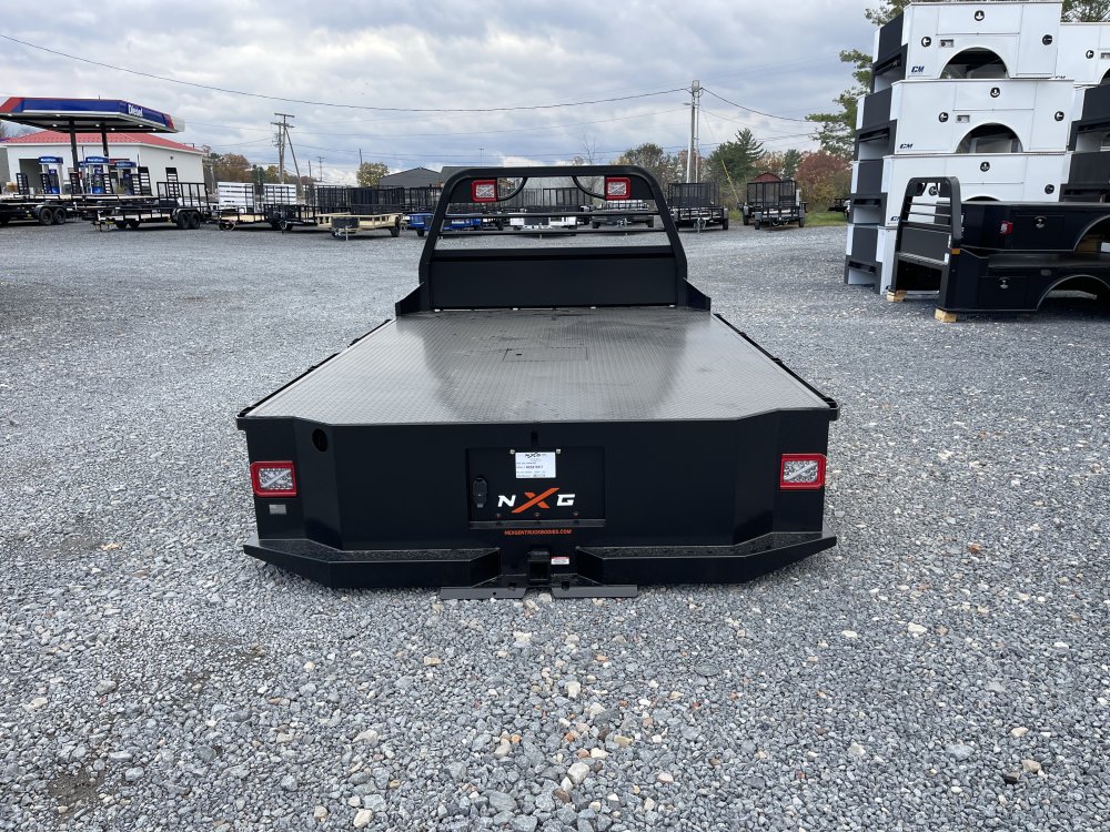 Xsb Steel 11'4/97/84/34 Skirted Specs & Options Feature Availability Details Available Lengths Standard 84", 8' 6", 9' 4", 11'4" XCoat Standard NXG's proprietary multi-stage cleaning and powder coating system delivers unmatched corrosion resistance and a professional, durable finish built for harsh environments XRack Standard Fully integrated headache rack system, built into the body-not bolted on-with precision 3" x4" steel tubing, mandrel bends, and built-in Xlights with strobe capability for job-site safety XDeck Standard Fully recessed 1 /8" steel tread plate deck maximizes cargo space and eliminates exposed edges, protecting against wear and corrosion XHitch Standard Frame-integrated towing system with 30,000?lb gooseneck, 24,500?lb receiver, upright safety chain keepers, pre-wired electrical connections, and an emergency breakaway loop for the safest towing experience in the industry Side Rails Standard 3/8"?×?2" formed steel rub rails with integrated stake pockets and tie-down compatibility Fuel Fill Standard Angled, corrosion-resistant design improves flow, reduces splashback, and features standard rear-facing location for easier fueling Trailer Light Plug Standard Automotive-grade seven-way/four-way 12-volt electrical hookup for reliable trailer connections Marker Lighting Standard DOT-approved LED bullet lights for road-ready visibility Toolboxes Standard Four lockable flush-mounted toolboxes with bulb weatherstripping for maximum sealing and corrosion protection Toolbox Handles Standard Black T-handle compression latches, all keyed alike for convenience and security Fenders Standard Heavy-duty steel radius fenders for lasting durability Side Steps Standard NXG XSteps in front of and behind fenders, plus rear step for unmatched bed access Frame Rails Standard 4" structural channel steel Crossmembers Standard 3" roll-formed steel for superior deck support and load capacity Rear Skirt Standard One-piece formed steel with tapered corners for improved turning clearance Gooseneck Hitch Standard XHitch rated at 30,000 lbs Receiver Hitch Standard XHitch rated at 25,000 lbs with 2.5" receiver Standard.