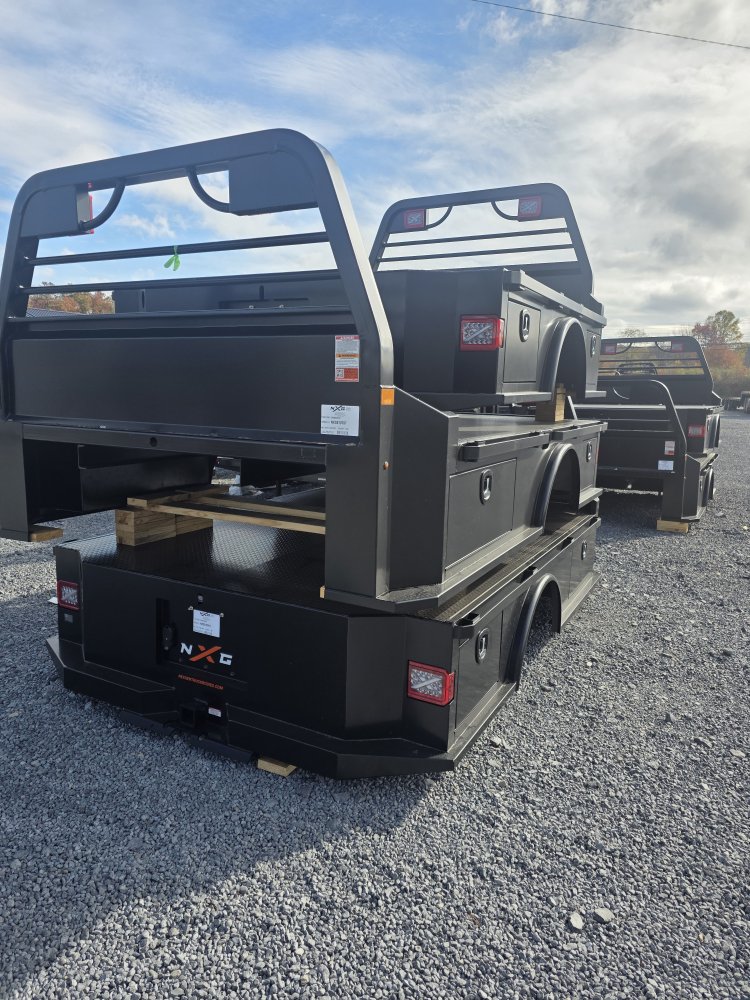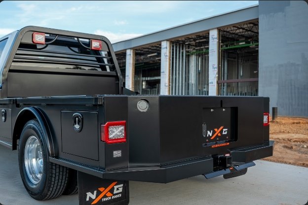 XCoat Standard NXG's proprietary multi-stage cleaning and powder coating system delivers unmatched corrosion resistance and a professional, durable finish built for harsh environments XRack Standard Fully integrated headache rack system, built into the body-not bolted on-with precision 3" x4" steel tubing, mandrel bends, and built-in Xlights with strobe capability for job-site safety XDeck Standard Fully recessed 1 /8" steel tread plate deck maximizes cargo space and eliminates exposed edges, protecting against wear and corrosion XHitch Standard Frame-integrated towing system with 30,000?lb gooseneck, 24,500?lb receiver, upright safety chain keepers, pre-wired electrical connections, and an emergency breakaway loop for the safest towing experience in the industry Side Rails Standard 3/8"?×?2" formed steel rub rails with integrated stake pockets and tie-down compatibility Fuel Fill Standard Angled, corrosion-resistant design improves flow, reduces splashback, and features standard rear-facing location for easier fueling Trailer Light Plug Standard Automotive-grade seven-way/four-way 12-volt electrical hookup for reliable trailer connections Marker Lighting Standard DOT-approved LED bullet lights for road-ready visibility Toolboxes Standard Four lockable flush-mounted toolboxes with bulb weatherstripping for maximum sealing and corrosion protection Toolbox Handles Standard Black T-handle compression latches, all keyed alike for convenience and security Fenders Standard Heavy-duty steel radius fenders for lasting durability Side Steps Standard NXG XSteps in front of and behind fenders, plus rear step for unmatched bed access Frame Rails Standard 4" structural channel steel Crossmembers Standard 3" roll-formed steel for superior deck support and load capacity Rear Skirt Standard One-piece formed steel with tapered corners for improved turning clearance Gooseneck Hitch Standard XHitch rated at 30,000 lbs Receiver Hitch Standard XHitch rated at 25,000 lbs with 2.5" receiver.