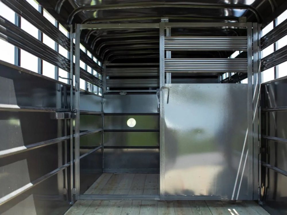 - 7' or 7'6" interior height 5K axles 6K axles Extra center gate Sliding center gate Smooth skin with Plexiglass track; Plexiglass not included Rubber bumper Blackout package