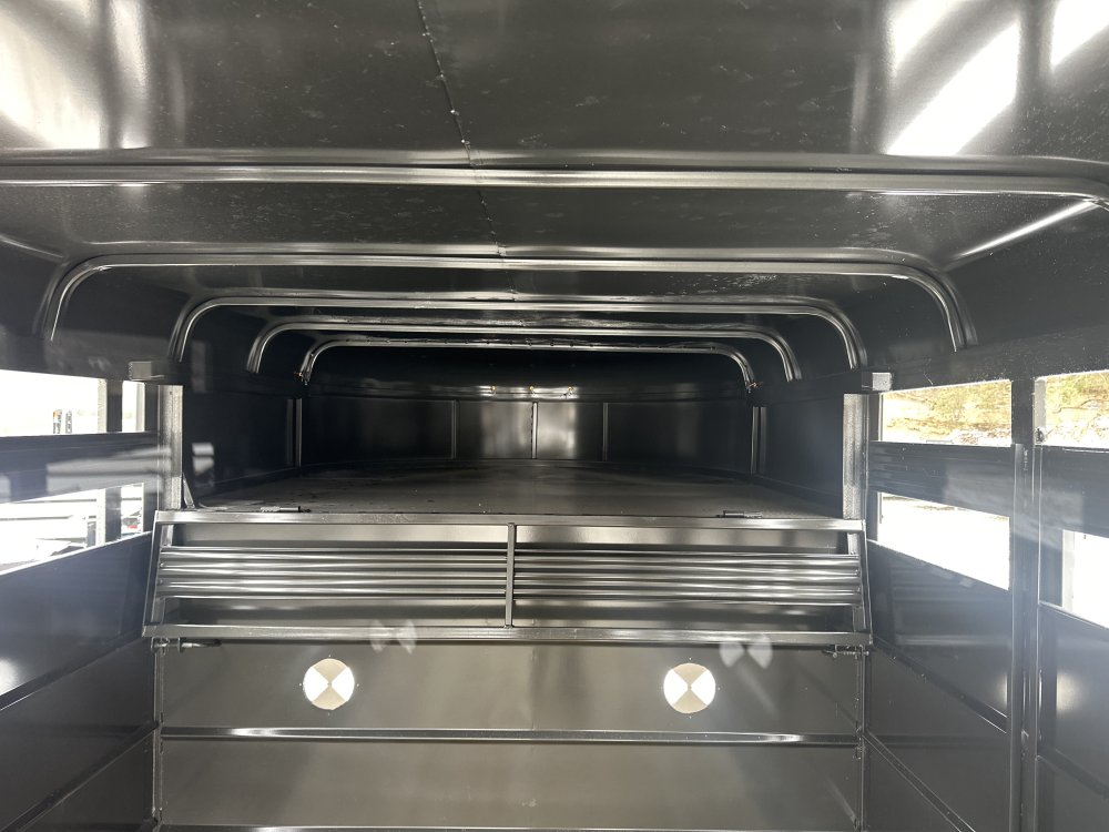 The gooseneck livestock trailer has all the same quality craftsmanship as our bumper models with the added gooseneck hauling capacity.