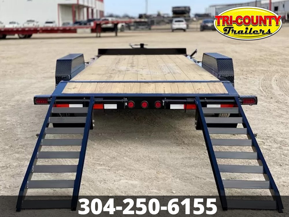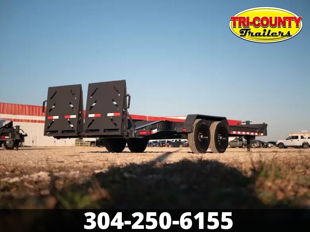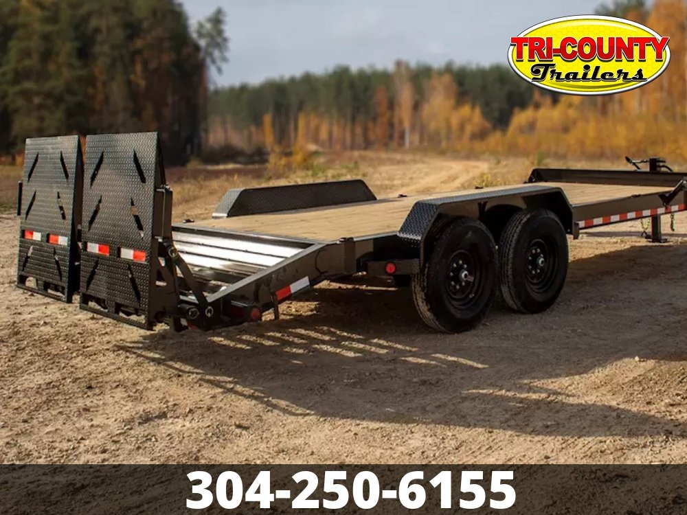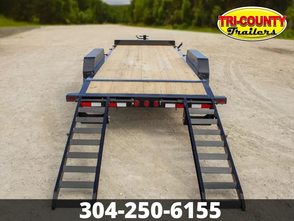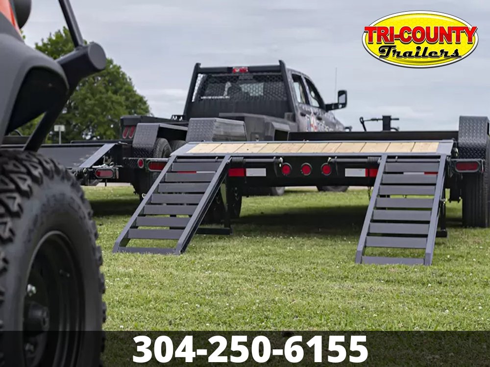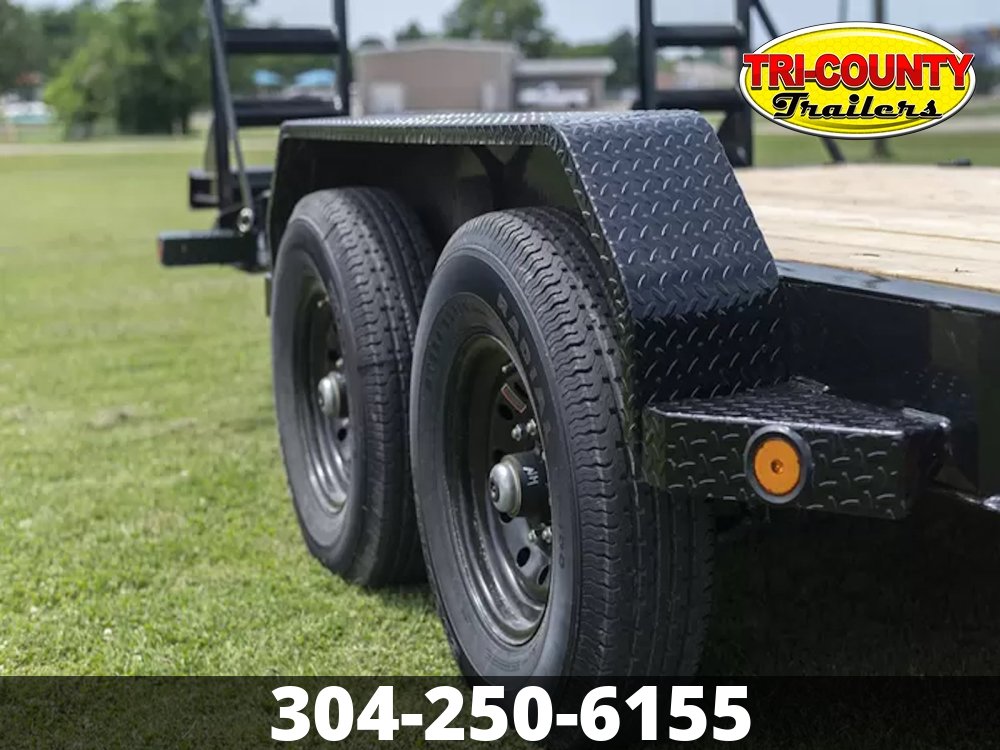 - 8" I-Beam Frame & Tongue (10 lbs/ft ) 14,000 lb GVWR Tandem 7k Brake Axles Super Lube Hubs 235/80 R16 Radial Tires Oversized Front Tool Box 10k Drop-Leg Bolt-On Jack Slide in, Stand-Up Ramps or Rampage Ramps 2x8 Treated Lumber Flooring 16" Black Wheels 6 Weld-On D-Rings Removable 14 Ga Diamond Plate Fenders 3" Structural Crossmembers on 16" Centers Integrated Tie-Downs on Front Bump Rail Weld-On 3/8" Safety Chains 5 Position 2 5/16" Ball Coupler Powder Coat & One Cure Primer Lifetime LED Stop, Signal, Marker, & License Plate Lights 6 Leaf Spring Suspension DOT Reflective Tape Electric Breakaway Kit with Charger All Lighting DOT Approved Molded Sealed Harness