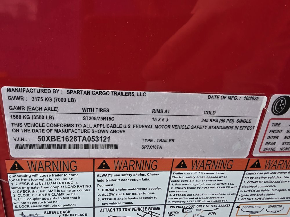 2026 Spartan Cargo Trailers 7' x 16' Tandem Axle