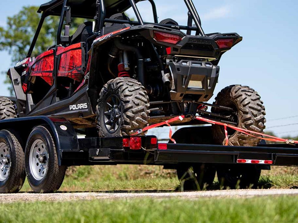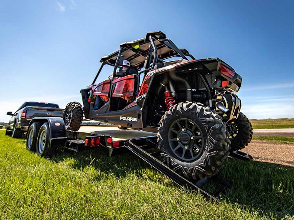 It's a simple, durable economy-style car hauler designed to transport cars, small tractors, ATVs, and side-by-sides, but if you're looking for a little flash, you can upgrade to chrome wheels and higher quality materials.