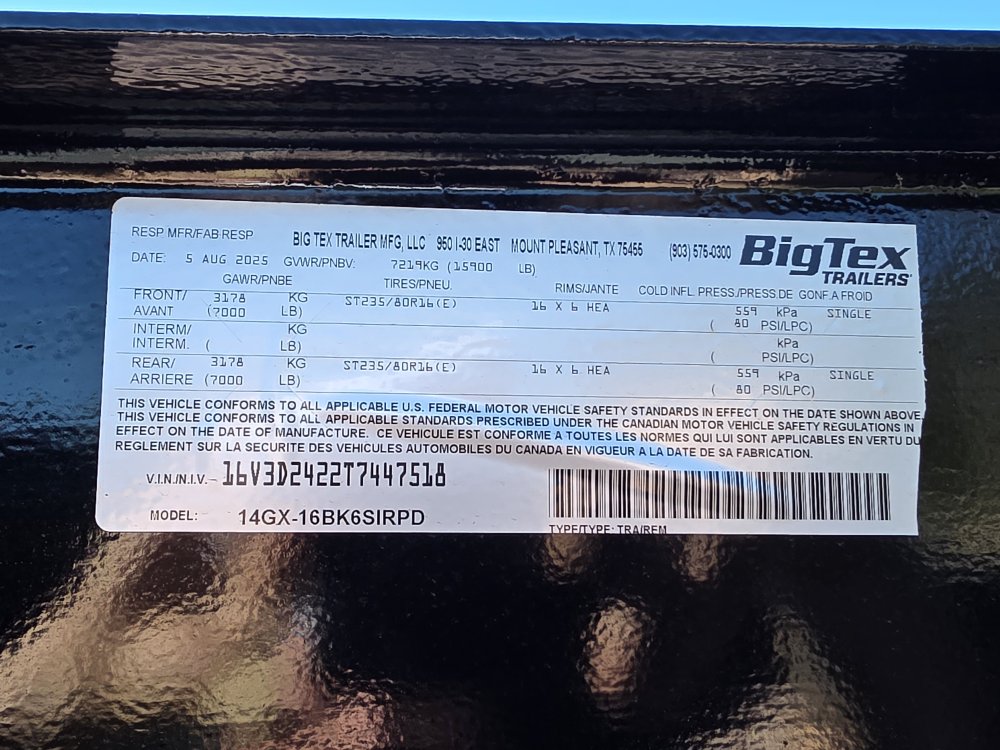 Manufacturer: Big Tex Trailer Manufacturing, Inc.