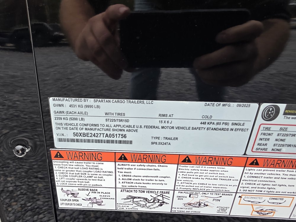 2026 Spartan Cargo Trailers 8.5' x 24' Tandem Axle.