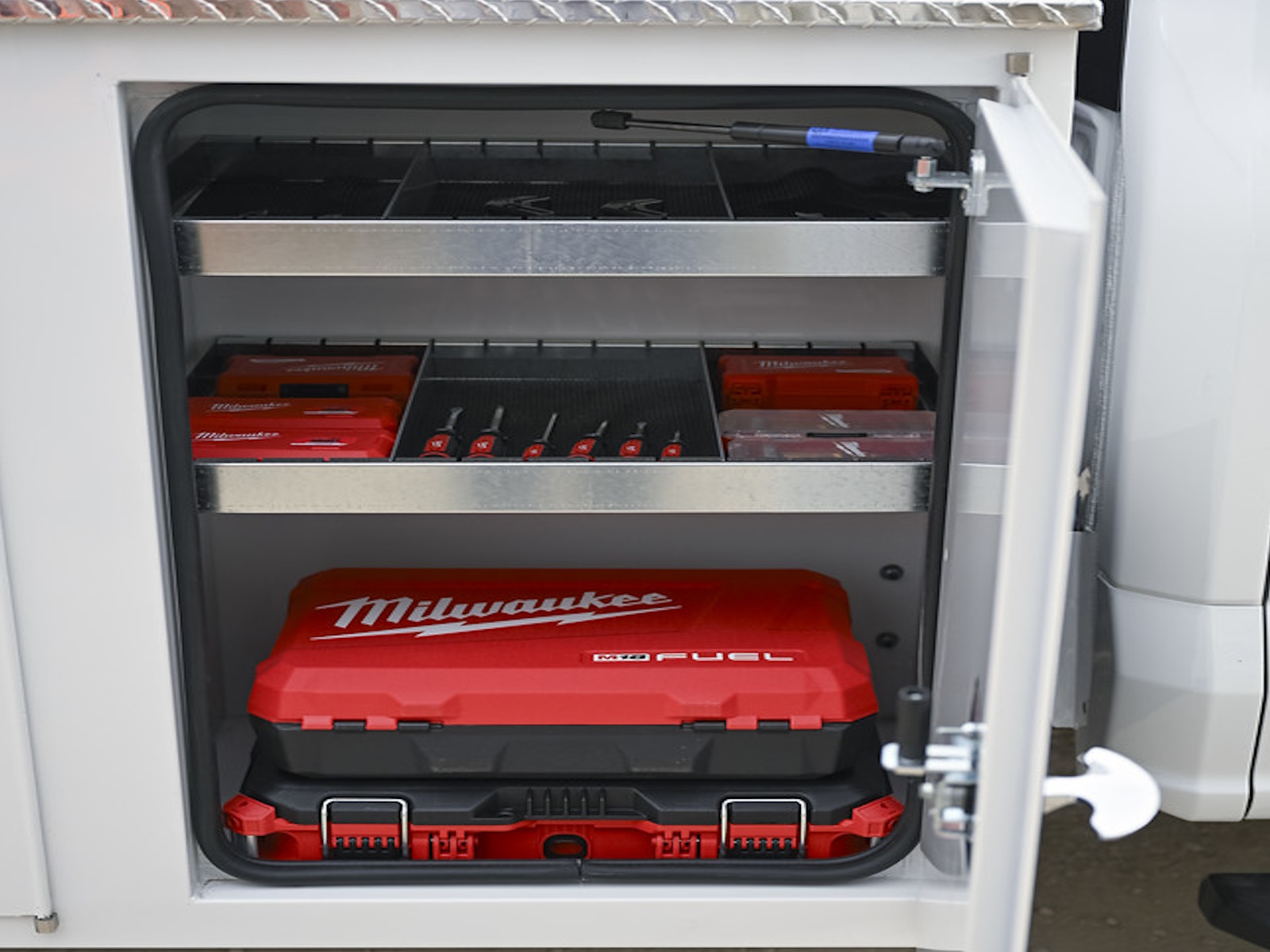 - Solid aluminum compartment tops provide strength to the tops of our toolboxes and all that they can hold.