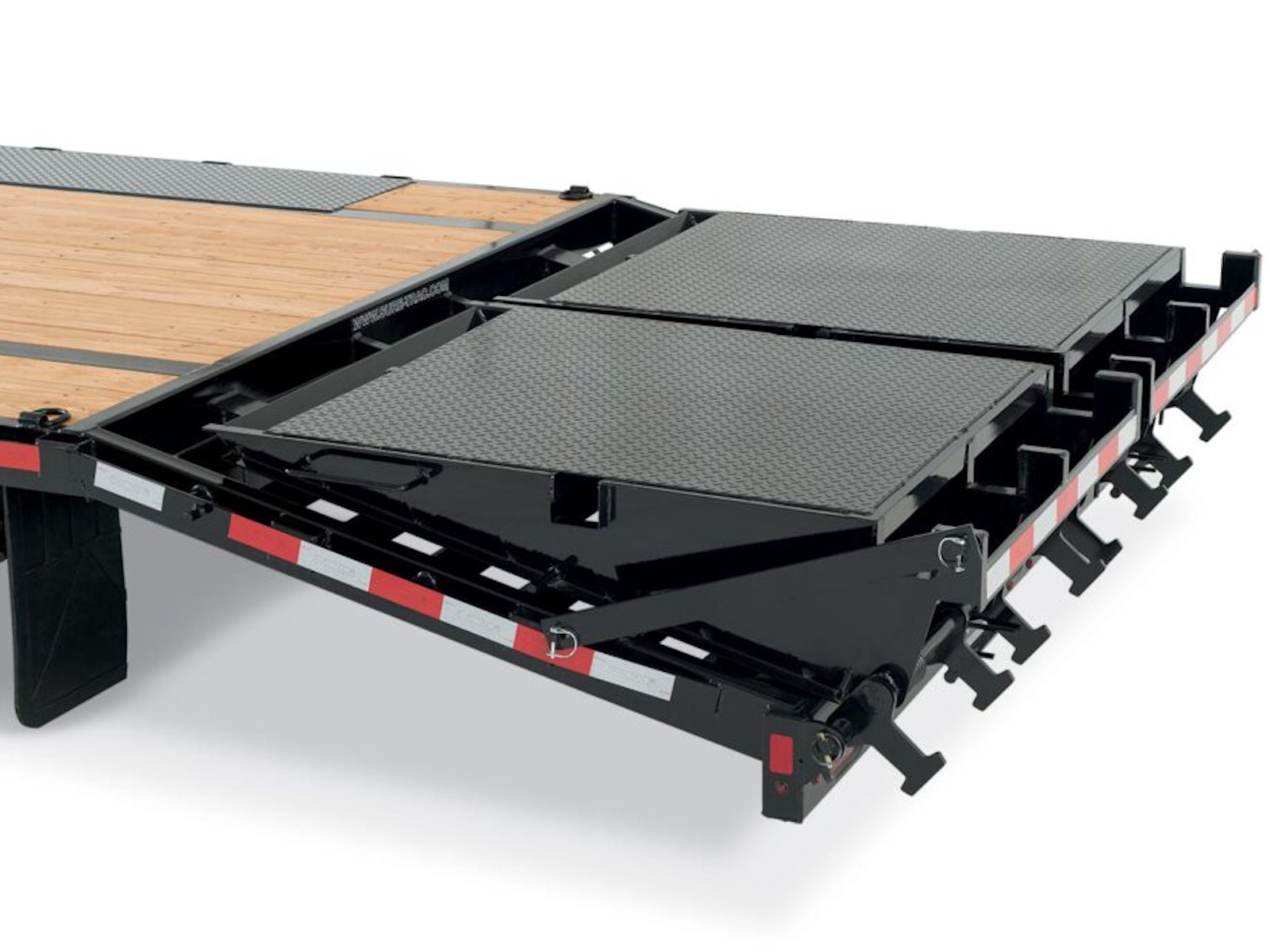- A grated beavertail that automatically knocks dirt and other debris off the tires of the equipment you're loading as it drives up the tail.