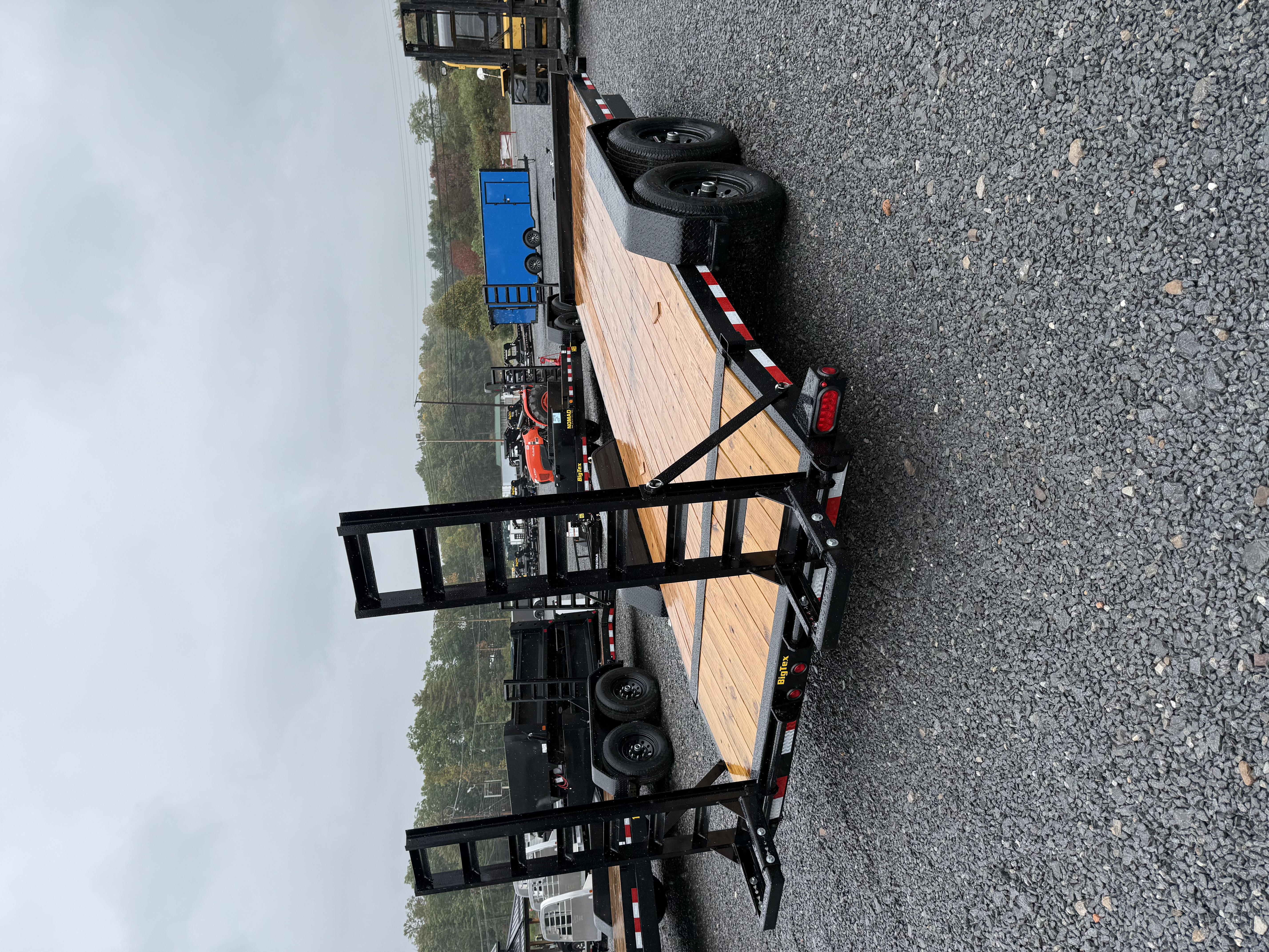 Tested Big Tex Tough. Value Guaranteed. The 14EB from Big Tex Trailers is designed for those who seek reliability and value without sacrificing quality. This trailer features a 6" channel frame and tongue, ensuring exceptional strength and durability for any haul. With tandem 7,000# axles and forward self-adjusting brakes, the 14EB provides a stable and smooth towing experience. It offers an 83"-wide deck with a 32" dovetail, adjustable knee ramps, a fabricated front stop rail with an integrated spare tire mount, and six strategically placed stake pockets, making it a versatile and reliable partner for all your equipment hauling needs.
