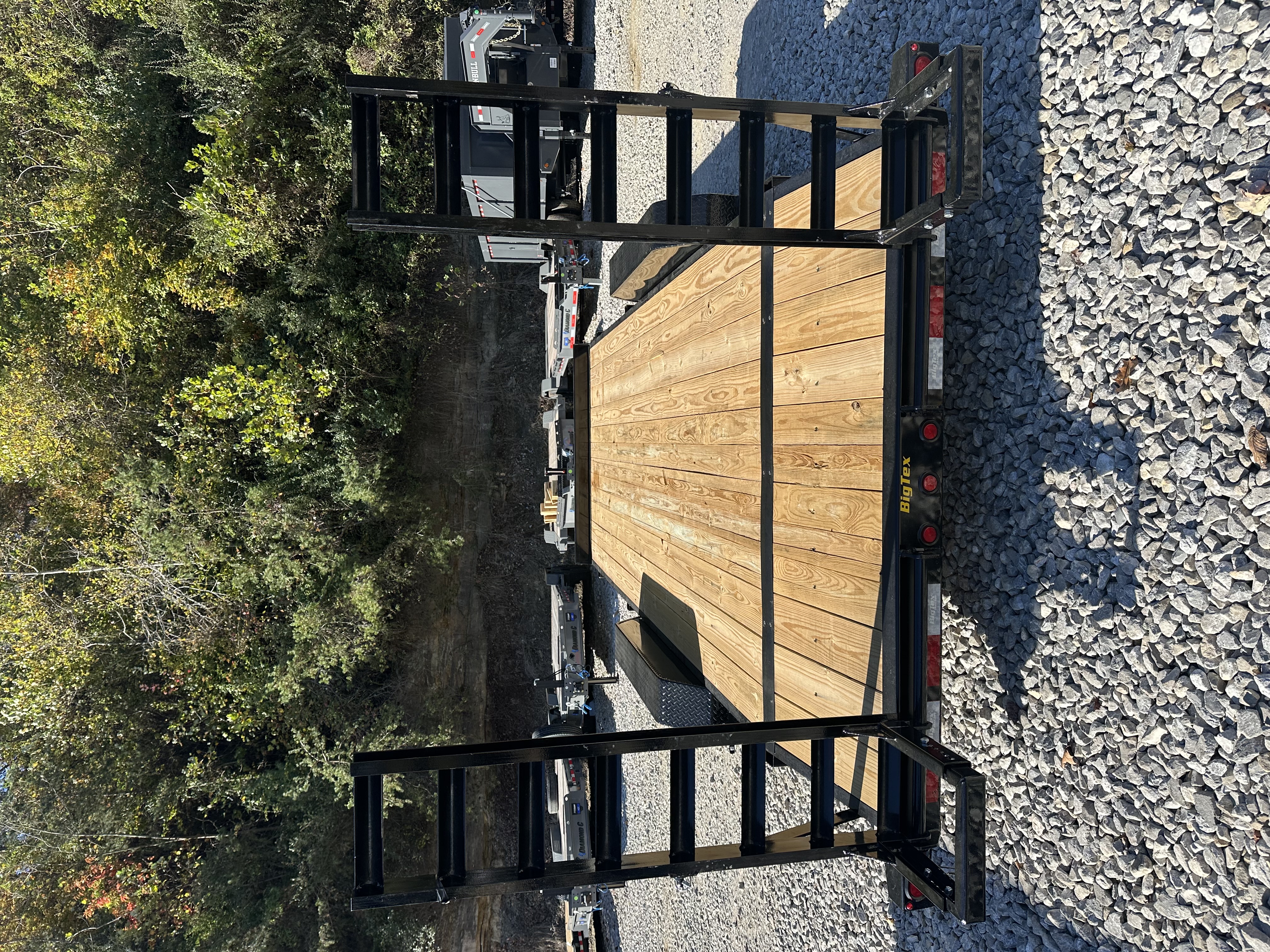 Tested Big Tex Tough. Value Guaranteed. The 14EB from Big Tex Trailers is designed for those who seek reliability and value without sacrificing quality. This trailer features a 6" channel frame and tongue, ensuring exceptional strength and durability for any haul. With tandem 7,000# axles and forward self-adjusting brakes, the 14EB provides a stable and smooth towing experience. It offers an 83"-wide deck with a 32" dovetail, adjustable knee ramps, a fabricated front stop rail with an integrated spare tire mount, and six strategically placed stake pockets, making it a versatile and reliable partner for all your equipment hauling needs.