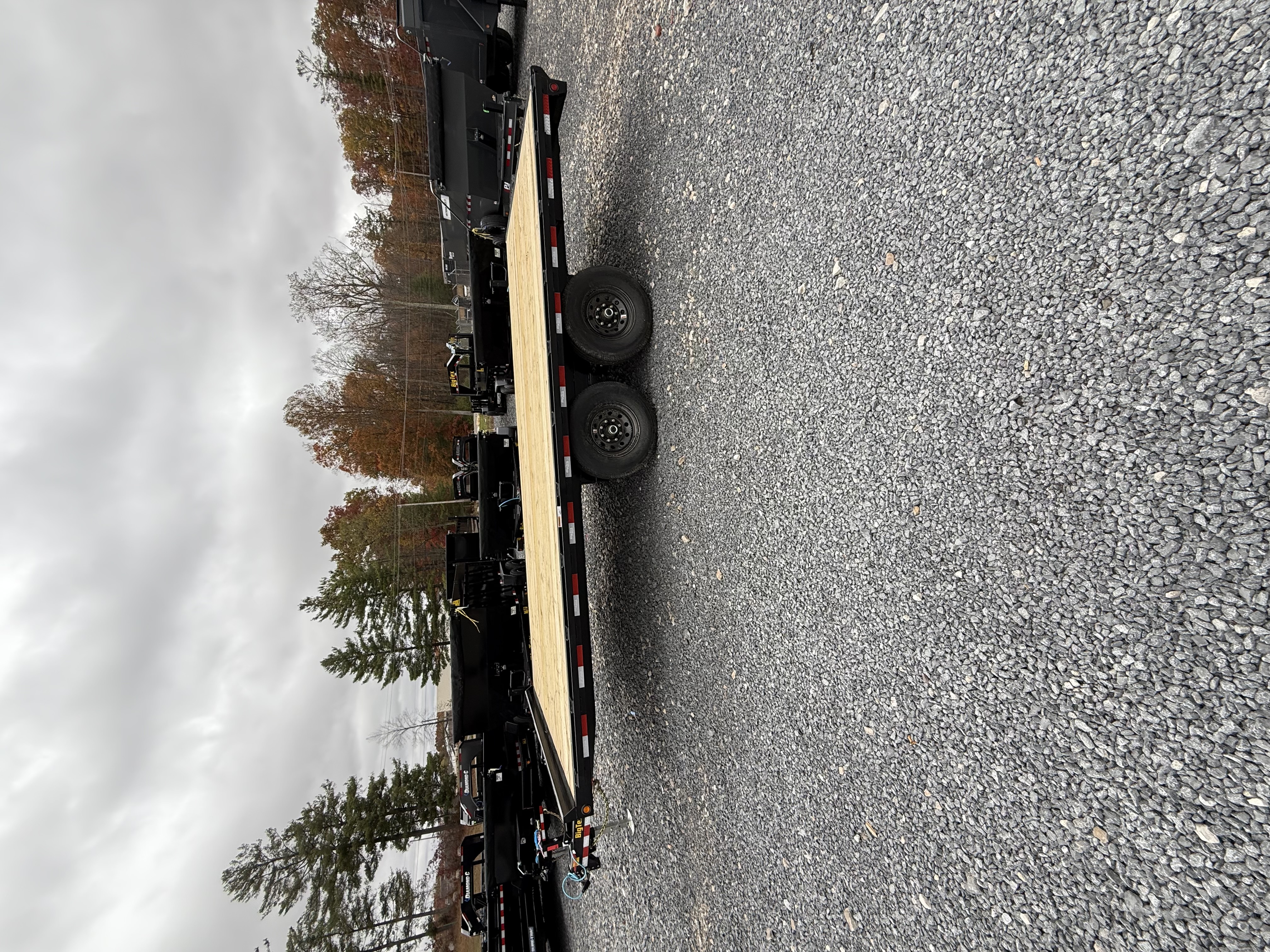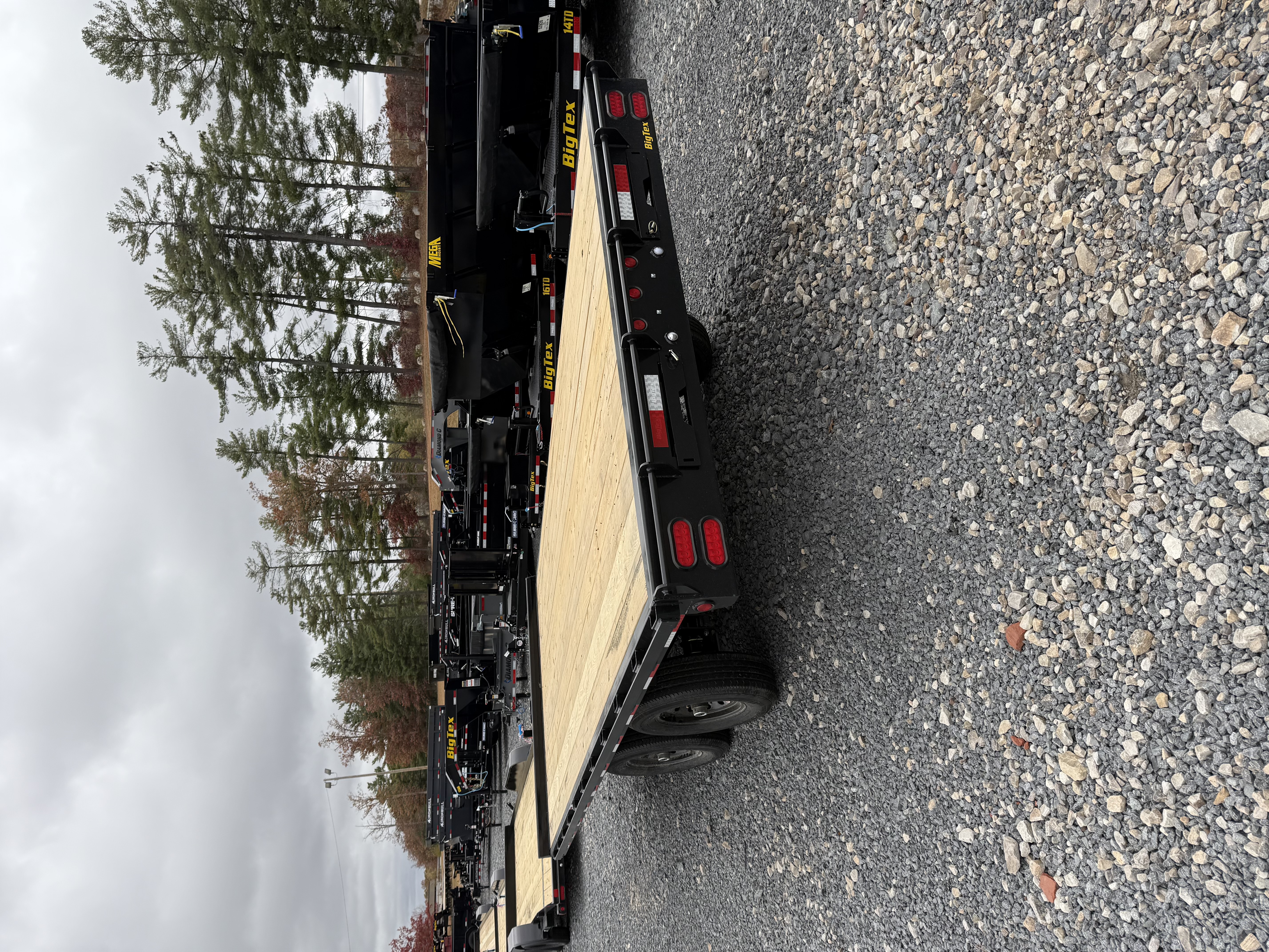 The 14OE 14K Over-the-Axle Bumper Pull Trailer combines durability and value with its 6-inch channel frame and tongue. The 102-inch wide deck and 35-inch deck height provide ample space, while the full-length rubrail, stake pockets, and standard slide-in ramps ensure secure and versatile hauling. Tandem 7K axles, forward self-adjusting brakes, and radial tires offer reliable performance, and the adjustable coupler and 7,000#. drop-leg jack ensure easy hitching.