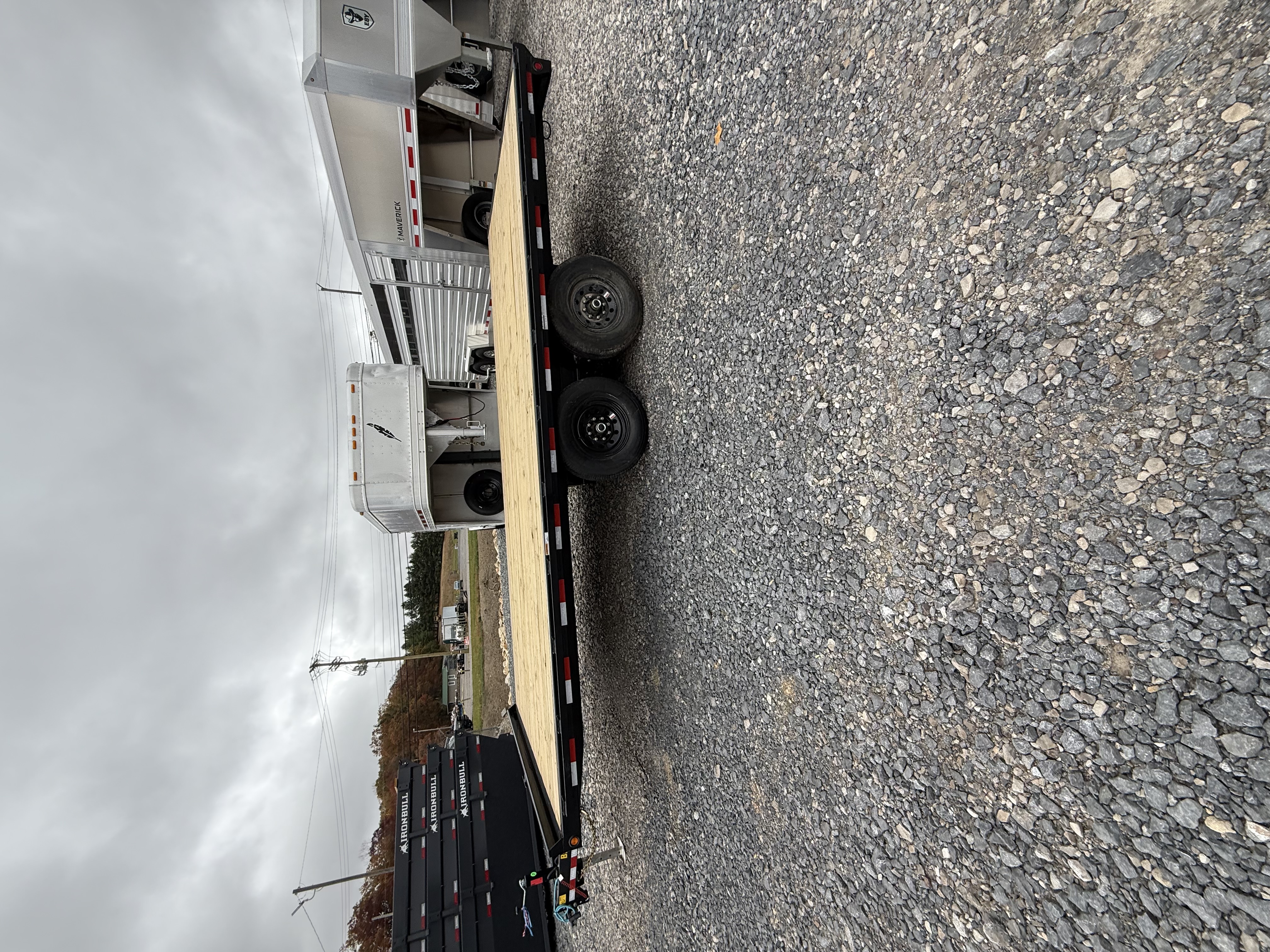 The 14OE 14K Over-the-Axle Bumper Pull Trailer combines durability and value with its 6-inch channel frame and tongue. The 102-inch wide deck and 35-inch deck height provide ample space, while the full-length rubrail, stake pockets, and standard slide-in ramps ensure secure and versatile hauling. Tandem 7K axles, forward self-adjusting brakes, and radial tires offer reliable performance, and the adjustable coupler and 7,000#. drop-leg jack ensure easy hitching.