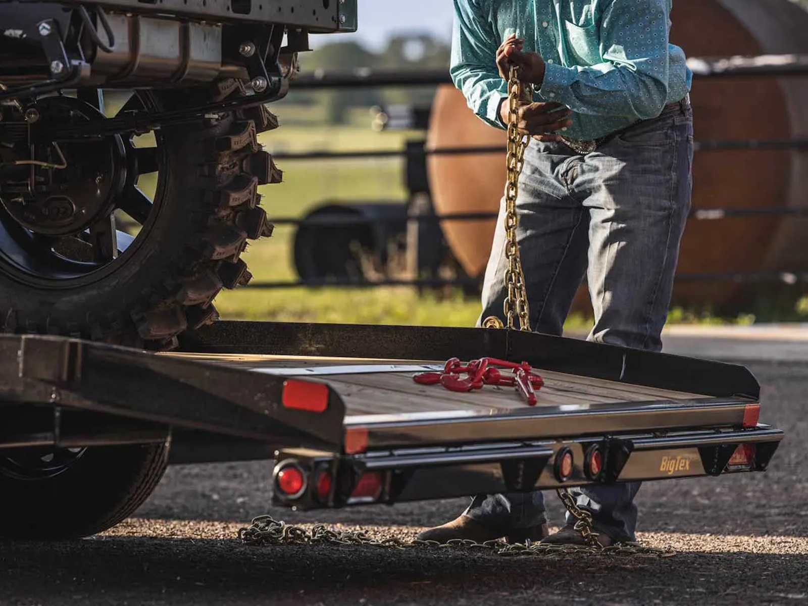 Work harder and look great while doing it with the 70CH Tandem Axle Car Hauler, a tough and versatile car hauler purpose-built to transport cars, small tractors, ATVs, and side-by-sides. This tandem axle car hauler trailer comes equipped with steel teardrop fenders that are bolted on for easy removal and reinstallation, giving you flexibility during loading and unloading and making maintenance easier. And if you want to make loading and unloading safer, an optional 4’ slide-in angle ramp package does just that. Pack it up. Haul it out. Get it done. The 70CH has your back.