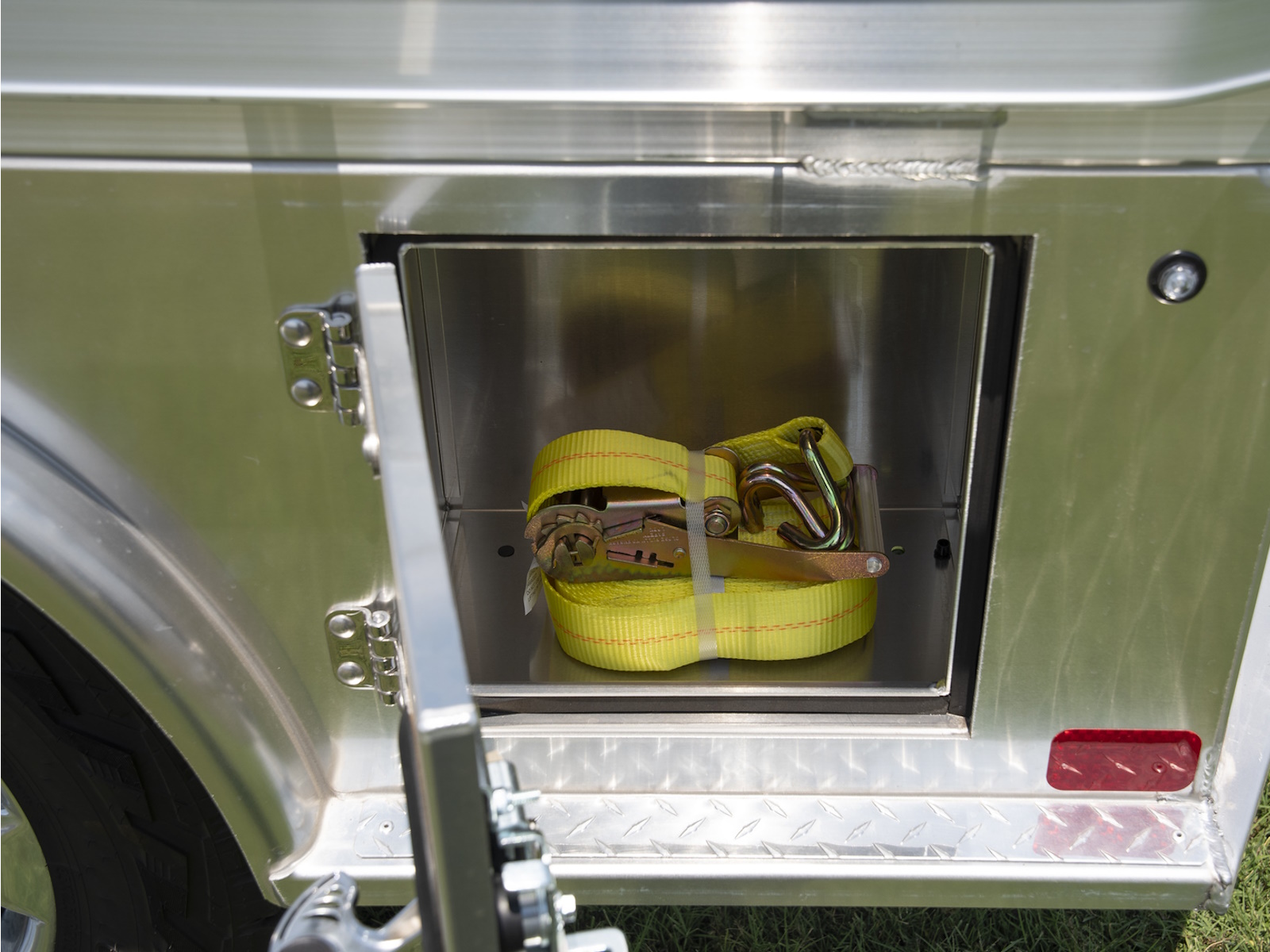 - Our recessed tool box doors provide maximum safety in our large boxes to prevent weathering of your tools and equipment. For security, the dual latches lock with a key and padlock loop when desired.