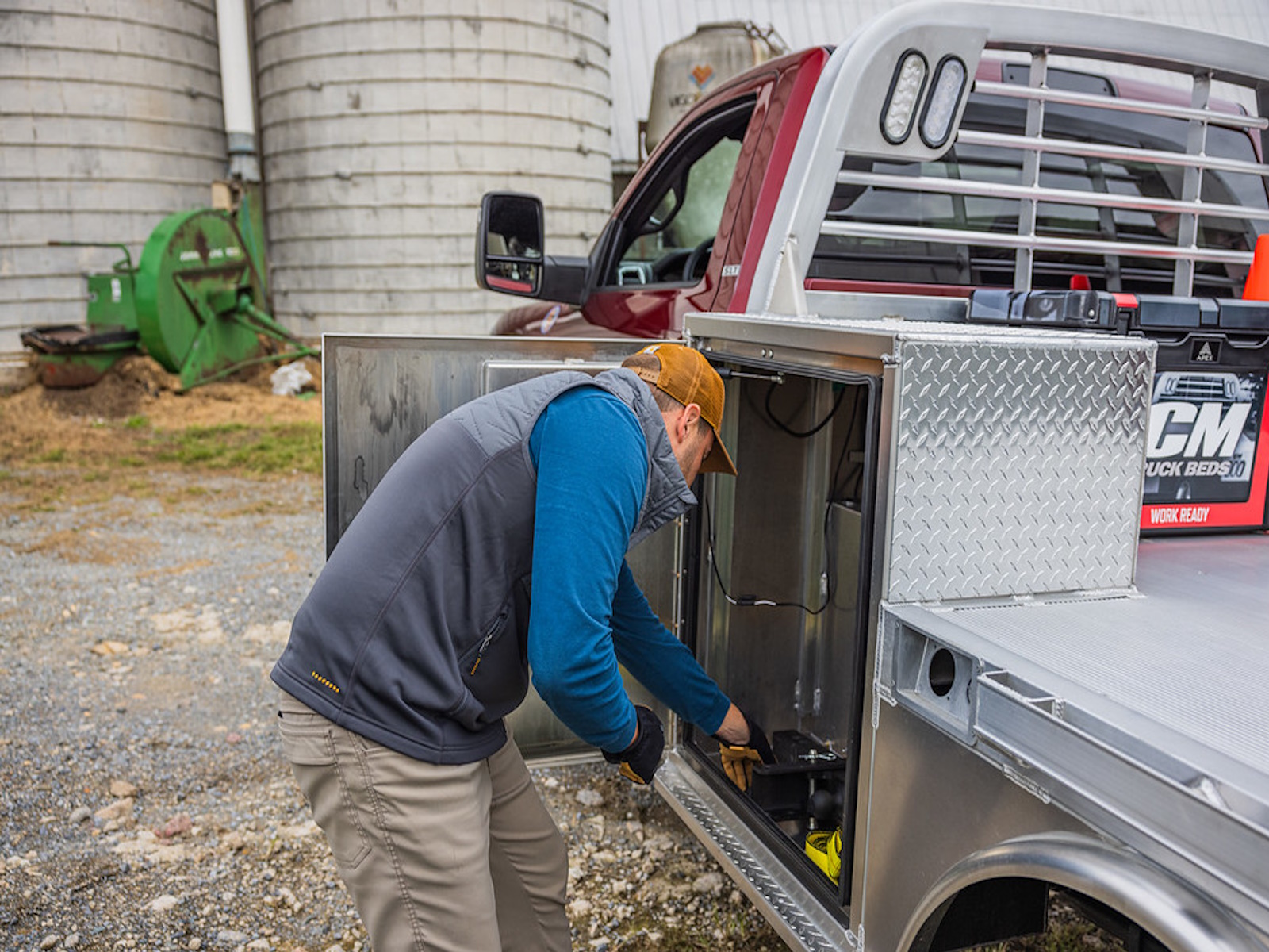 - Our recessed tool box doors provide maximum safety in our large boxes to prevent weathering of your tools and equipment. For security, the dual latches lock with a key and padlock loop when desired.