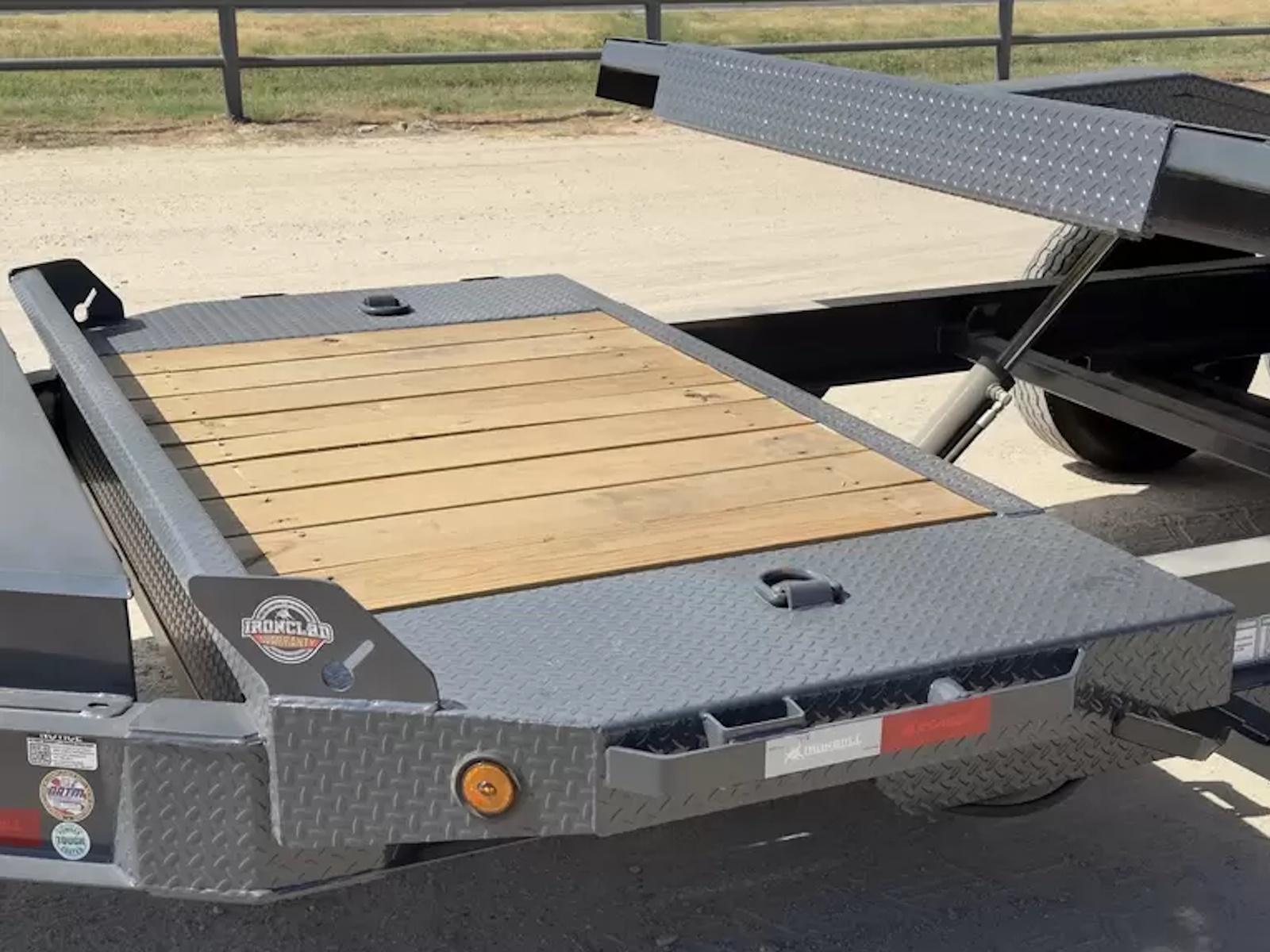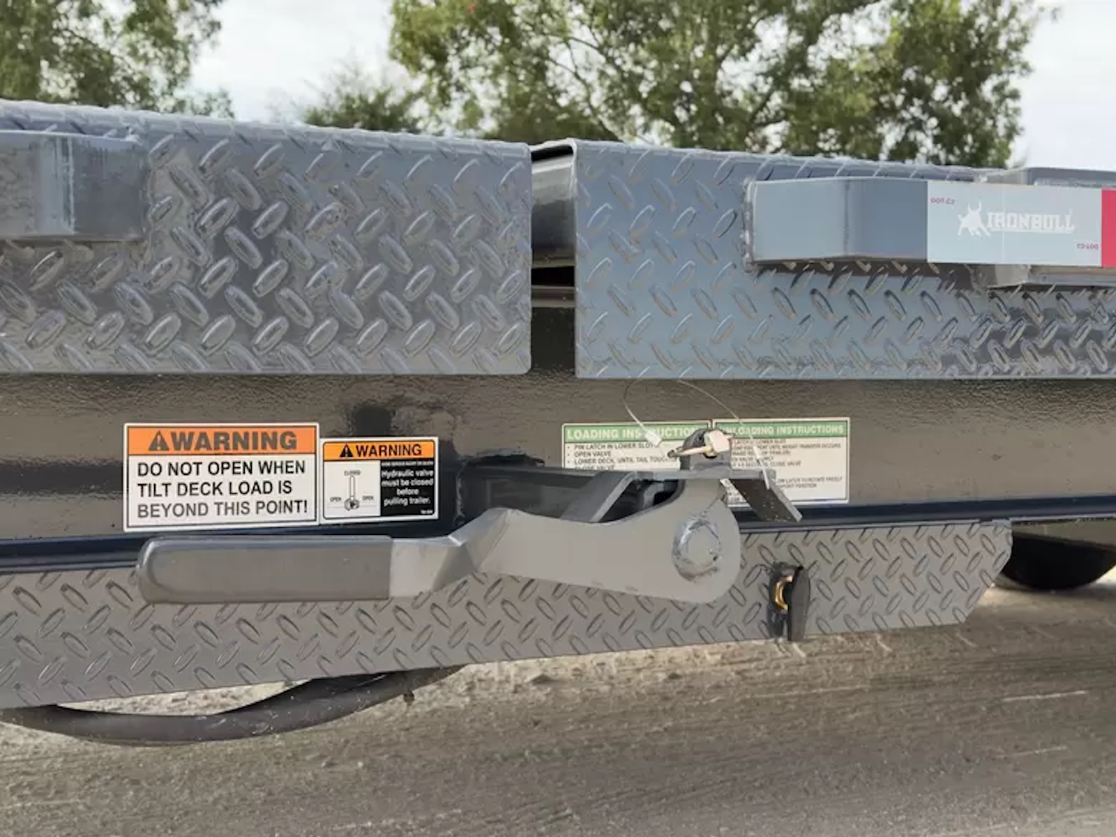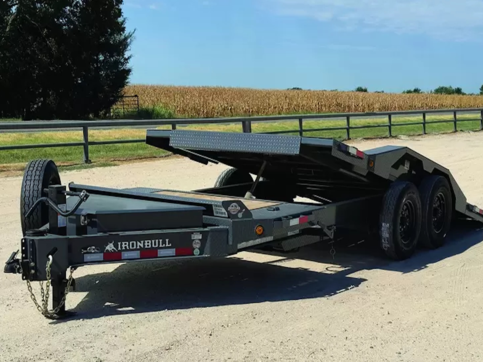 We have a new Bull on the market! It’s our 8” I-Beam 102 wide tilt equipment hauler. Iron Bull Gravity Tilt Decks offer a great alternative to ramps, steep loading angles and possible hang up points of traditional flat deck units. 14,000 lbs of gross vehicle weight rating ensures you have enough capacity for your heaviest loads, as well as expert craftsmanship combined with top-tier components will ensure you have an effortless tow. It’s a great fit for work and play.