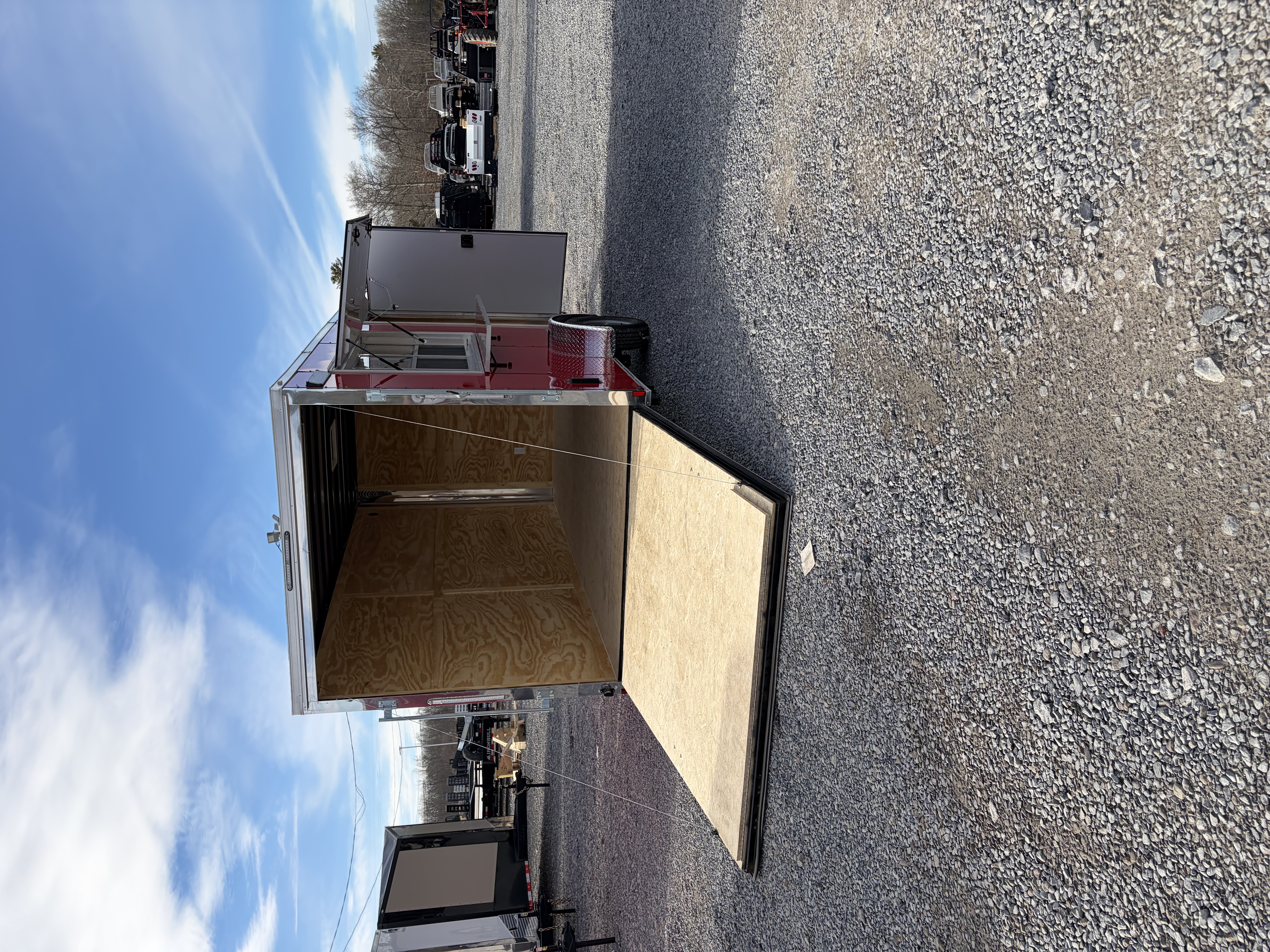 7' INTERIOR HEIGH, 72WX36H CONCESSION DOOR W/GLASS AND SCREEN, STABILIZER JACKS, WIRE AND BRACE FOR AC, WALL INSULATION, CEILING INSULATION, 12"X72"L FOLD DOWN SHELF,4' LED STRIP LIGHTS, 16" 12V LED EXTERIOR LIGHTS